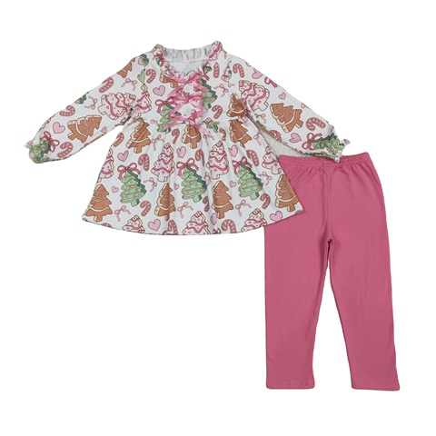 GLP2629 Western Casual Girl's Clothing Sets Christmas Trees Gingerbread Trees Print Top Children's Clothing