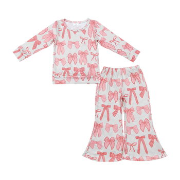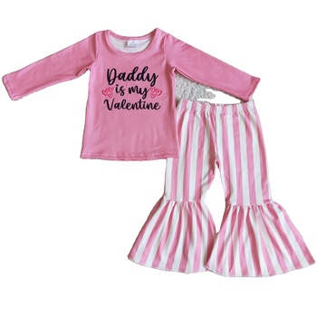 B9-35 Western Clothes Father's Day Long Sleeve pink and White Striped Flared Pants Little Girls Clothing Sets
