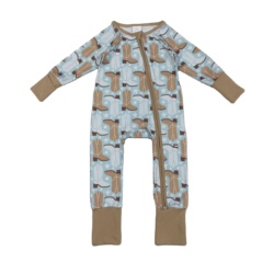 RTS Western Boots Star Print Baby Zipper Sleepers Kids Sleepwear Newborn Wholesale Boutique Toddler Baby Footie Sleepers
