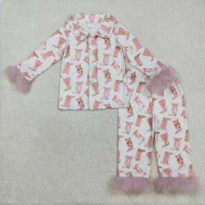 RTS Western Boots Print Cute Bows Kids Pajamas Outfits Feather New Designs Sibling Matches Boutique Kids Clothing 2 Pieces Set