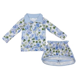 Western Clothes No MOQ Small Blue Flowers Zipper Print Baby Girl Vintage Style Summer Set Short Sleeve Fabric Clothes