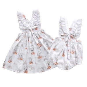 Preorder MOQ 5 Bunny White Little Girls Dress Romper Wholesale Sisters Easter Clothing Boutique Fashion Baby Holiday Clothes