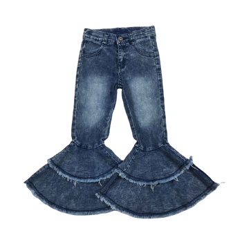 In Stock Boutique Tassel New Designs Kids Denim Pants Big Flared Pants Jeans Wholesale Little Girls Fashion Jeans Kids Clothing