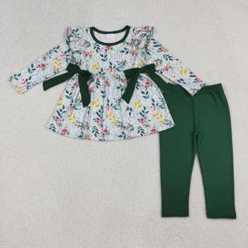 GLP2885洋服グリーンチェック柄の弓トルコプリント長袖パジャマ赤ちゃん女の子卸売RTS服セット