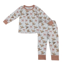 Высококачественная одежда в западном стиле розовая пижама с принтом утки и длинными рукавами для маленьких девочек, оптовая продажа, комплект одежды