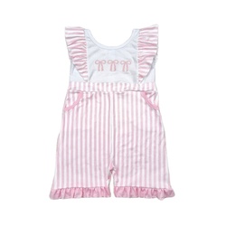 Милый детский розовый комбинезон в полоску с вышитыми бантами для маленьких девочек летний детский комбинезон для йоги в бутиковом стиле с мультяшным рисунком