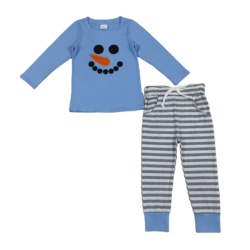 BLP1231 синий снеговик вышивка комплект с длинным рукавом полосатые штаны для мальчиков оптовая продажа пижамы детская одежда
