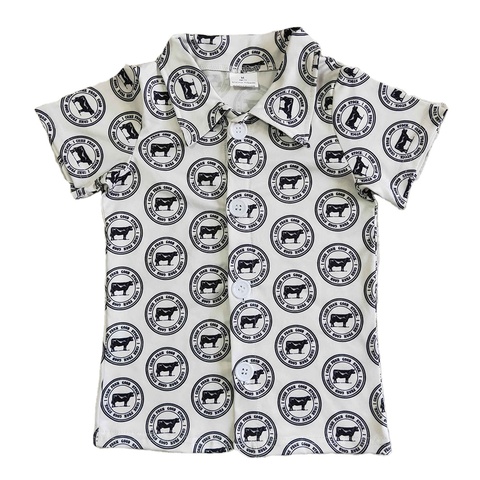 RTS Bé Trai Ngắn Tay Tây Bò Trắng Tee Áo Sơ Mi Thiết Kế Bán Buôn Kids Toddler Polo Thời Trang Một Mảnh Nút Lên Áo Sơ Mi