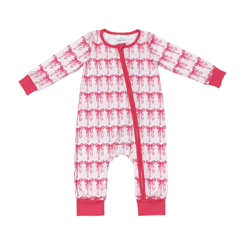 Cung màu hồng in bé gái rơi ngủ dây kéo Romper RTS bán buôn trẻ mới biết đi Boutique trẻ sơ sinh bé trai quần áo