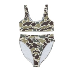 Không có thuế quan PM tôi Tây dành cho người lớn phụ nữ bơi phù hợp với màu nâu màu xanh lá cây Camo in 2 miếng RTS bán buôn bơi bộ quần áo người lớn