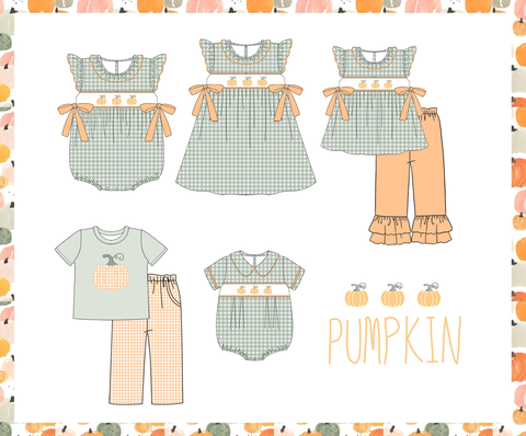 Boutique bí ngô thêu trẻ em chàng trai cô gái trang phục cô gái nhỏ ăn mặc Toddler bé bong bóng Romper anh chị em phù hợp với quần áo